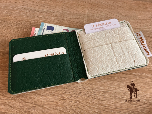 Portefeuille en Piñatex - Alternative vegan au cuir - Coloris « Vert amazone » et « Blanc » - Fabriqué à la main en France