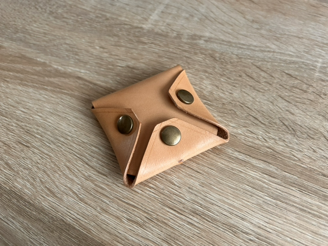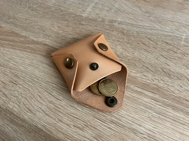 Porte monnaie carré en cuir de bœuf/taureau - Le Tamagoyaki (coloris “Au naturel”)